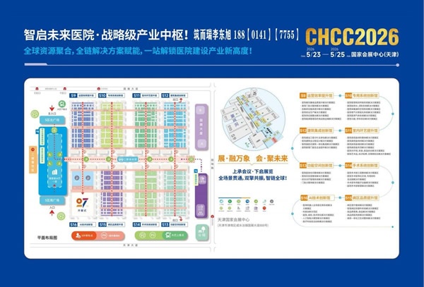 由筑醫(yī)臺、國藥勵展、中國醫(yī)學裝備協(xié)會醫(yī)院建筑與裝備分會、北京筑而瑞科技有限公司聯(lián)合多家權威機構共同舉辦的“第二十七屆全國醫(yī)院建設大會暨國際醫(yī)院建設裝備及管理展覽會”(簡稱 CHCC)將于 2026年5月23-25日在天津國家會展中心隆重召開。